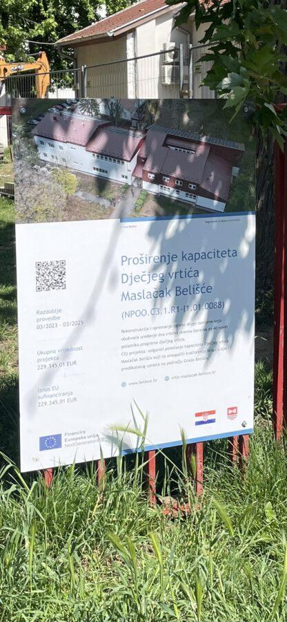 Realizacijom radova kroz projekt Proširenje kapaciteta Dječjeg vrtića Maslačak Belišće, stvorit će se uvjeti za boravak 40 polaznika dječjeg vrtića, odnosno dvije vrtićke skupine.