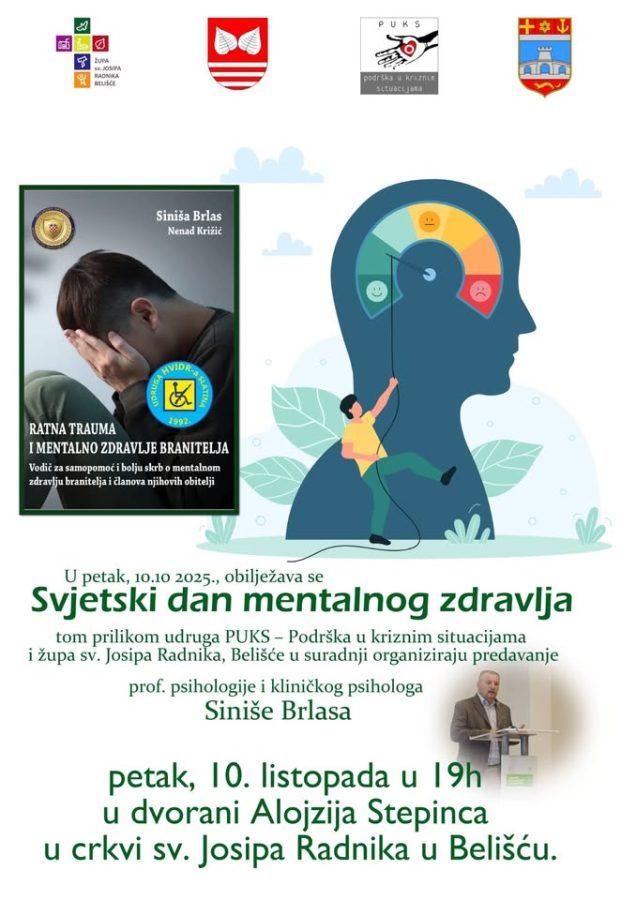 Povodom Svjetskog dana mentalnog zdravlja, u suradnji sa Župom sv. Josipa Radnika Belišće, udruga PUKS – Podrška u kriznim situacijama organizira predavanje prof. psihologije i kliničkog psihologa Siniše Brlasa.