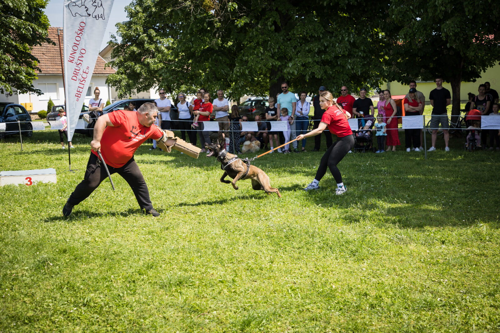 Između izbora pasa po kategorijama predstavili su se članovi našeg društva. Prvi se predstavio Matija Abramić sa svojom belgijskom ovčarkom Qwin te prikazao vježbe poslušnosti i agillity, a nakon njega Sara Srakić i Ivan Vuković su izveli IGP vježbu za radne pse.